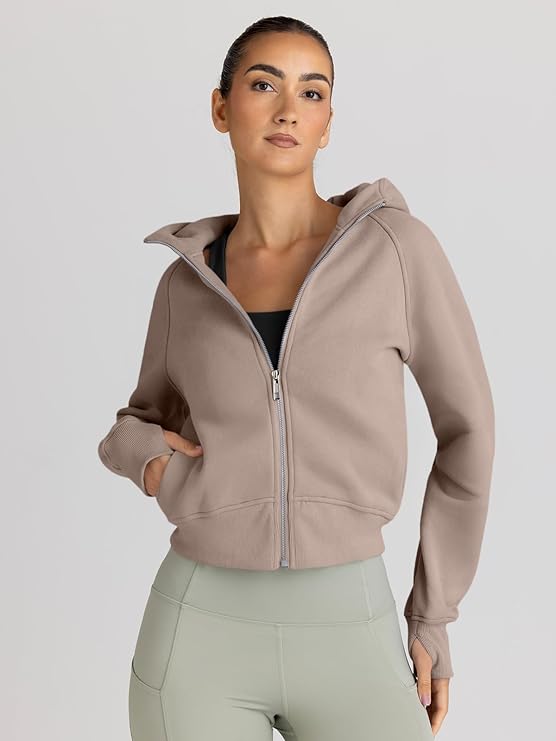 Trendy Queen Womens Zip Up Hoodies Jackets Cropped Sweatshirts Fleece Fall Outfits Casual Comfy Tops Winter Clothes 2025