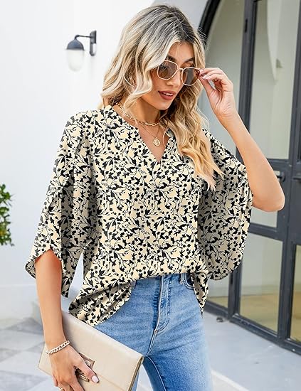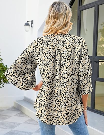 Features: Our women’s elegant chiffon blouses feature flowing ruffled split sleeves, three-quarter sleeves, and sexy V-neck design. Loose fit, available in solid colors and floral patterns, cute styles that are very popular now. In addition, they are not see-through and will not shrink, ensuring long-lasting wear.